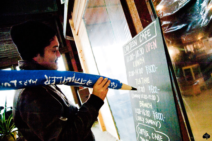 夏に作った、大きい鉛筆を、再び車に乗せて、ここに、つれてきてみました。