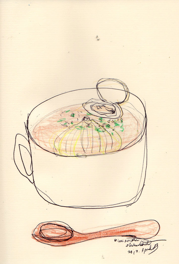 チカラを入れずに、玉葱がさーっとゼリーみたいにすくえるみたいなかんじのスープをいただいた。