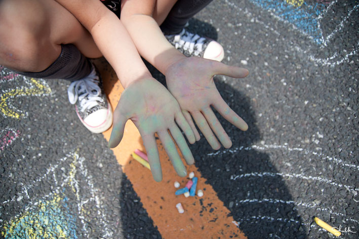 黄色と青色のチョークを塗り合わせて、緑色をつくったり!