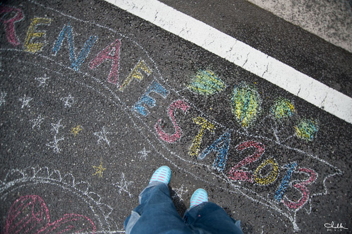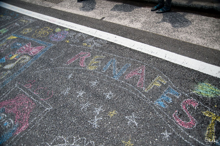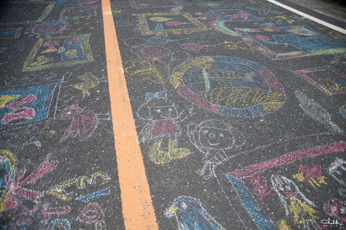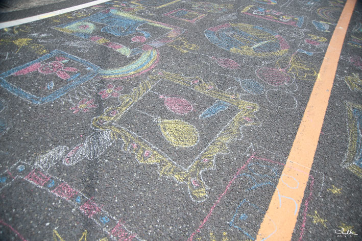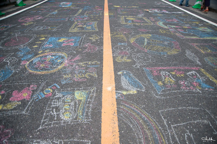 最初にshizukart®とSayakaさんが、いろんなカタチの額縁を道路に描いていって、