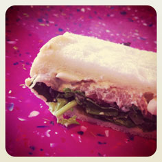 雨 雨。 帰りながら、食べようかと、お土産でもらった 特製サンドイッチを翌朝たべたら、 うま〜〜〜〜〜イ! おいし〜〜〜〜〜イ!! よ〜〜〜シ。 がんばろう。 Share: Twitter Facebook Google+