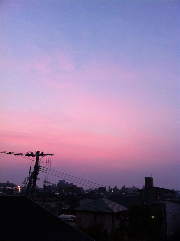 そして、今日も、今日がはじまる。 上は、今日、8月11日、朝5時20分の東の空。 下は、先週、8月 3日、朝5時40分の東の空。 どちらの朝の東の空のグラデーション具合がいい。 こういう空の自然の中で見つける色具合は、 わたしの職種にとっては、 大事な、大きな壮大なカラーバリエーション図鑑の一つなようなものだ。 Share: Twitter Facebook Google+