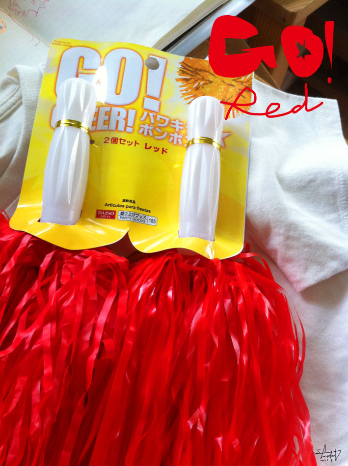 赤団だから、赤のアイテムを身につけていこう。と、思い、何を買おうかなぁ〜。と、思い、