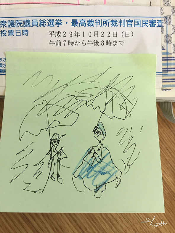 出口調査 台風21号。 早めに選挙に行く。 激しい雨の中、外で出口調査をしている、寒くて大変そうだな、、 報道機関の方のアンケートを受ける。 Share: Twitter Facebook Google+