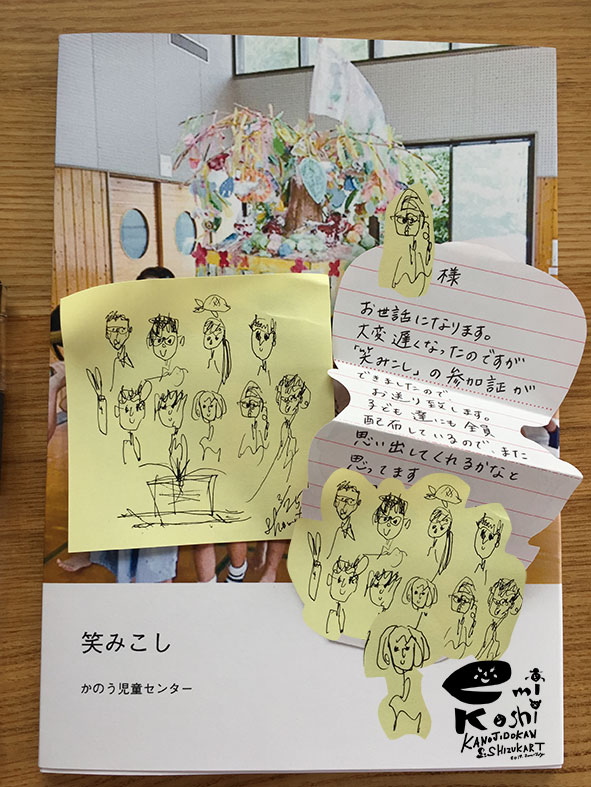 フォトブックありがとうございました。 昨年の夏のワークショップ「笑みこし」のフォトブックをいただきました。 ありがとうございました。 そして、各会場で「笑みこし」講師をした皆さんと 思い出話と今後もし、企画することがあれば。の意見交換をしました。 (私は、皆さんの意見を「ウンウン。(笑)」と頷いているばかりでしたが、、、) Share: Twitter Facebook Google+