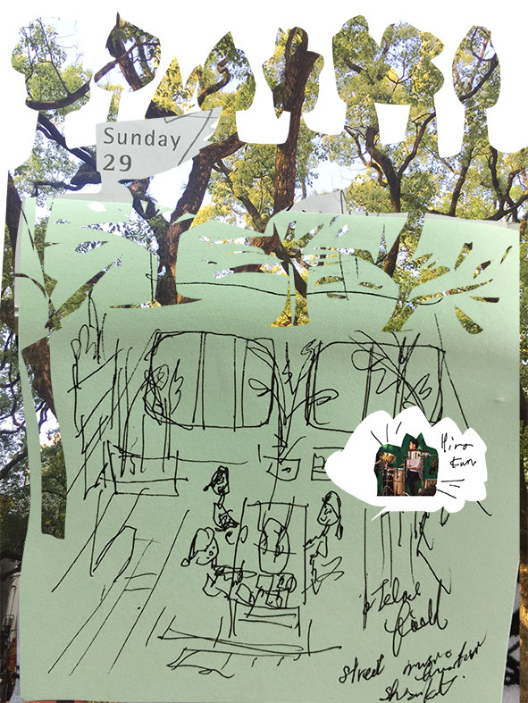 ストリート音楽祭 今回の連休の思い出といったら アトリエで友達と音楽祭の音を聴きながら 母の作ってくれた筍の煮付けや赤飯の詰まった弁当を広げ 食事したことです。 Share: Twitter Facebook Google+