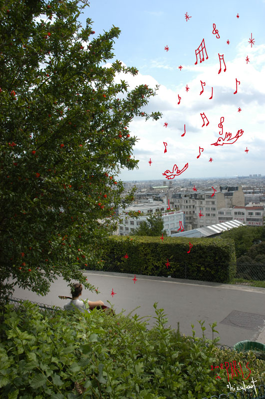 PARIS JE T'AIME ! montmartre(モンマルトル)の Basilique du Sacré-Cœur(サクレ・クール寺院)にて アコースティックギターを弾く少女を見かけた。 パリに生まれた女の子は、ラッキーだと思う。 けれど、日本に生まれて、宮崎で育って、どの地にお世話になっても ワタシより、すごく、数倍熱く、数倍あったかい、 素晴らしい人と出会えてる自分も、ラッキーだな。と思う。 Share: Twitter Facebook Google+