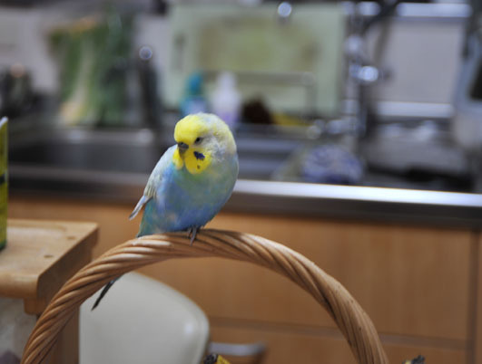 止まり木 家に帰ると、インコのRUNが、最近お気に入りの場所 カゴの持ち手を止まり木にして、台所にいます。 ウサギのPAULを、チラチラ、気にかけております。 Share: Twitter Facebook Google+