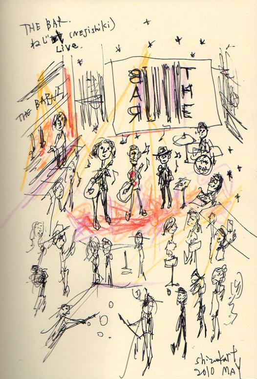 NEJISHIKI LIVE ~THE BAR~ 先日、THE BAR にて『ねじ式(NEJISHIKI)』のライブに遭遇しました。 パンチをたくさん感じて、すごく!気に入りました。 その日、映画館で上映中の『ソラニン』を観たこともあり、 そこで俳優・桐谷健太さんの熱演談義などをし、 バンド音楽づけの一日になりました。 Share: Twitter Facebook Google+