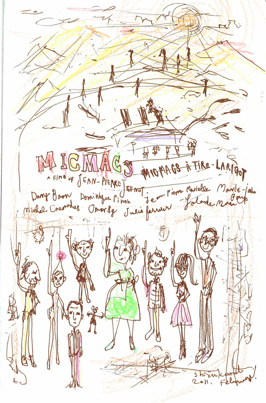 映画『ミックマック』Micmacs à tire-larigot 映画『ミックマック』 “大人の仕返しの仕方” がとてもおもしろく転がっていく感じで、 心臓をくすぐらっれぱなしの111分でした。 最後の悪い奴らをやっつけて、正体をあかすシーン。 みんなが、現場から立ち去るシーン。 爽快さが天にむかう感じが、たまらなくよかった。 ジャン=ピエール・ジュネ監督、 『ミックマック』を作ってくれてありがとうございます! と伝えたい映画でした。 Share: Twitter Facebook Google+
