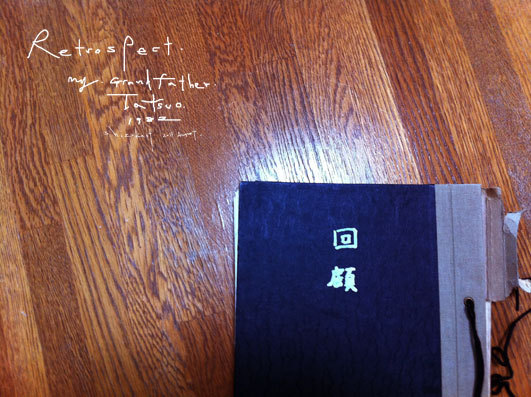 原稿用紙をコピーして、二つに折り、穴をあけて、紐でとおしてあります。