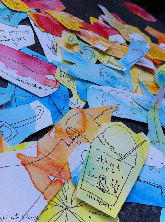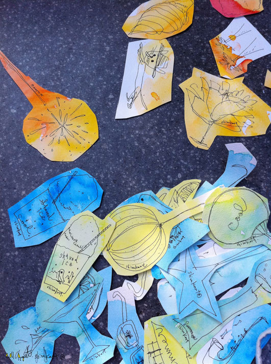 描きあげたイラストに ハサミをいれてばらばらにします。