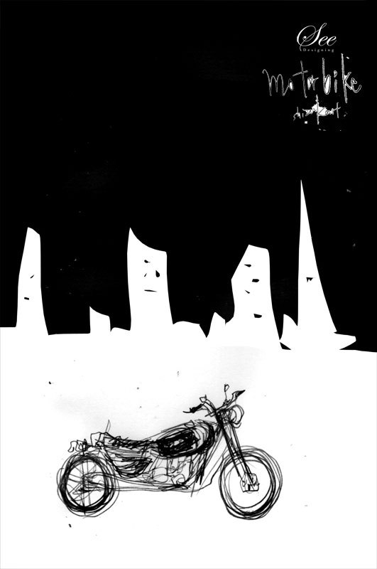 冷たい闇に走る、濃い漆黒色のオートバイ See Designing & shizukart®