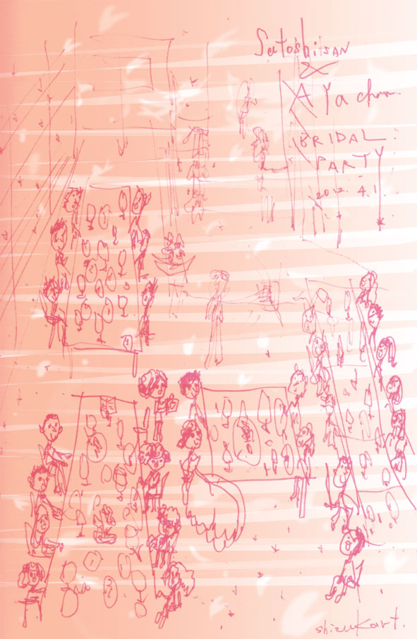 いい夕方 ブラインド越しに、夕日が差し込み、 みんなの笑顔を、くっきりと、オレンジと影の、ボーダー模様に照らしていた夕方。 いい夕方のはじまり方。 主役の2人のご家族が、末永く、幸せでありますように。 Share: Twitter Facebook Google+