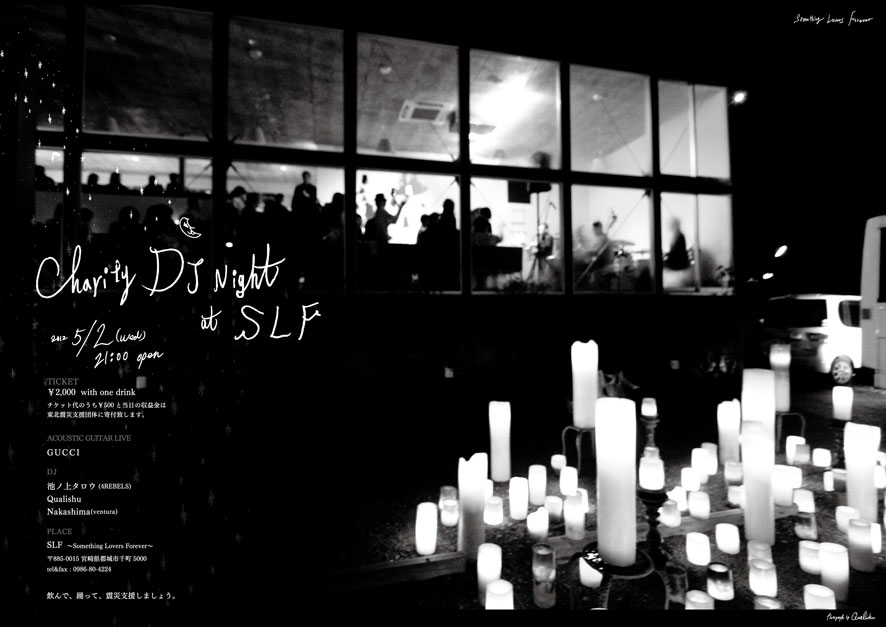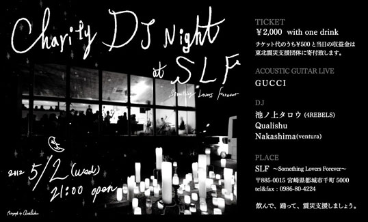 チャリティーイベントということでチケット代の¥500は震災支援団体に寄付させていただきます。