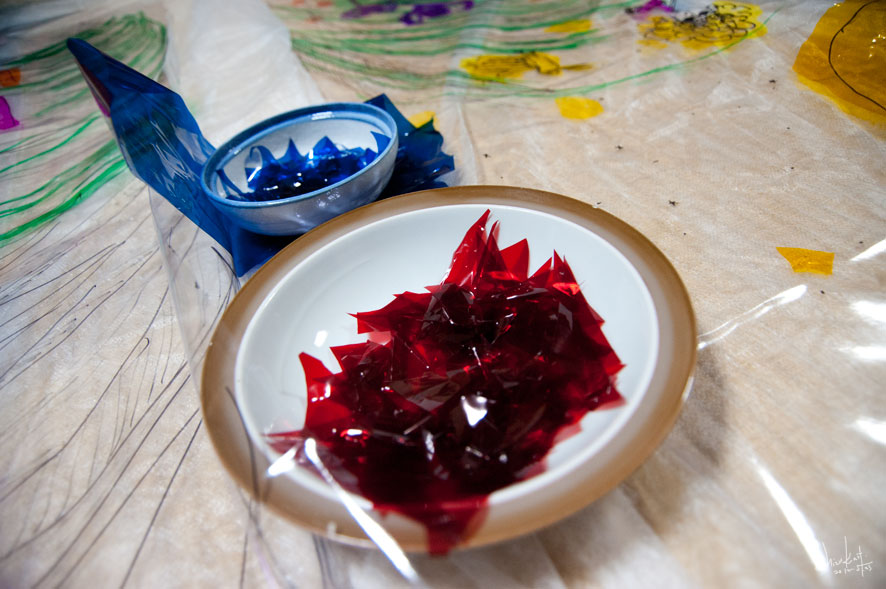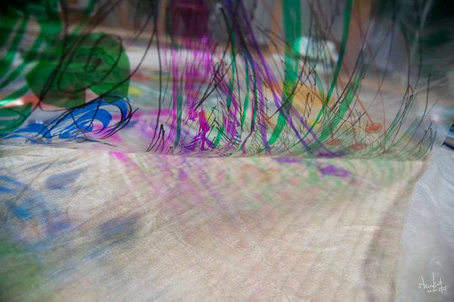 作業中に、光をあてて、下に移る絵をみながら、