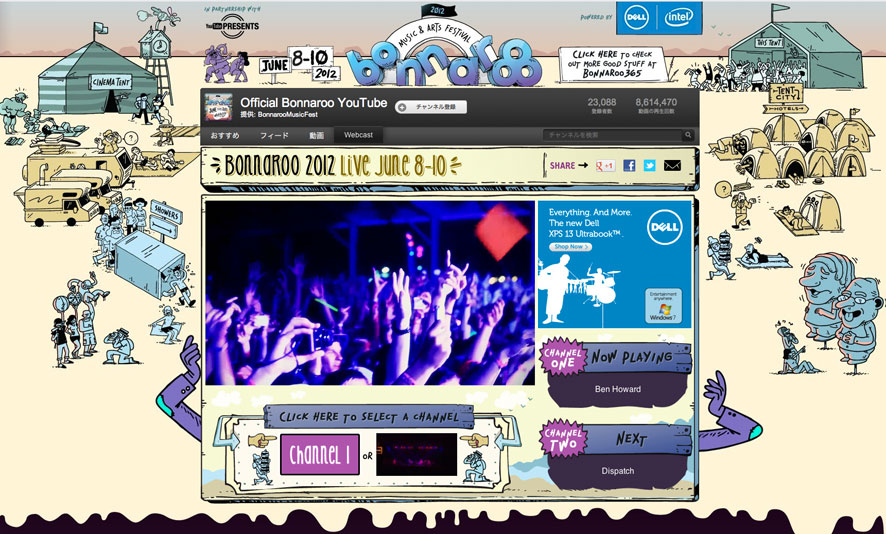 このBonnaroo Music Festival 2012のYouTubeの画面をひらいていただくと、