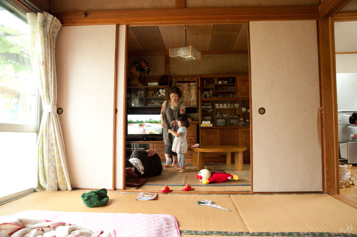 生活の色。 小さいころは、爺ちゃん婆ちゃんちに、いくたびに、 「なんで、ちゃいろやと。(部屋の中の壁がくすんだいろで茶色)」と、 思ってたことを。 わたしの家に帰って、写真を撮って、思い出しました。 あらら、めいっこは、ふすまの紙を、はがしているし。。。 わたしの家も、ぜんたいてきに、茶色になってきたなぁ。。。 この色は、 生活の色ですね。 きらいな色じゃないです。 どこか安堵の色ですね。 Share: Twitter Facebook Google+