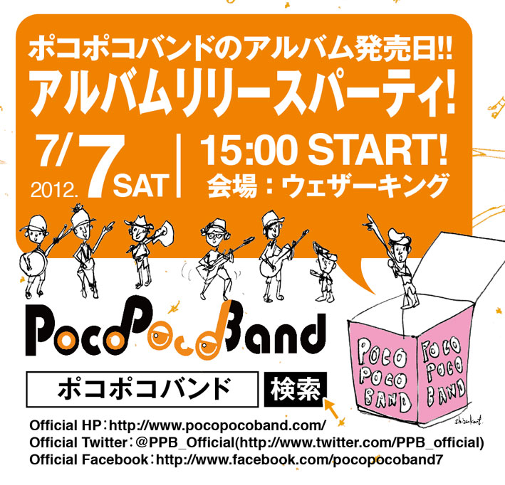 ミミコイ POCOPOCOBANDが、 FM MIYAZAKI「耳が恋した」に。(2012.6.28 O.A) 7月7日は、ウェザーキングにて、ファーストアルバム『毎日がエビデイ』リリースパーティです。 午後3時からスタートです。 Share: Twitter Facebook Google+