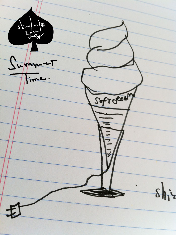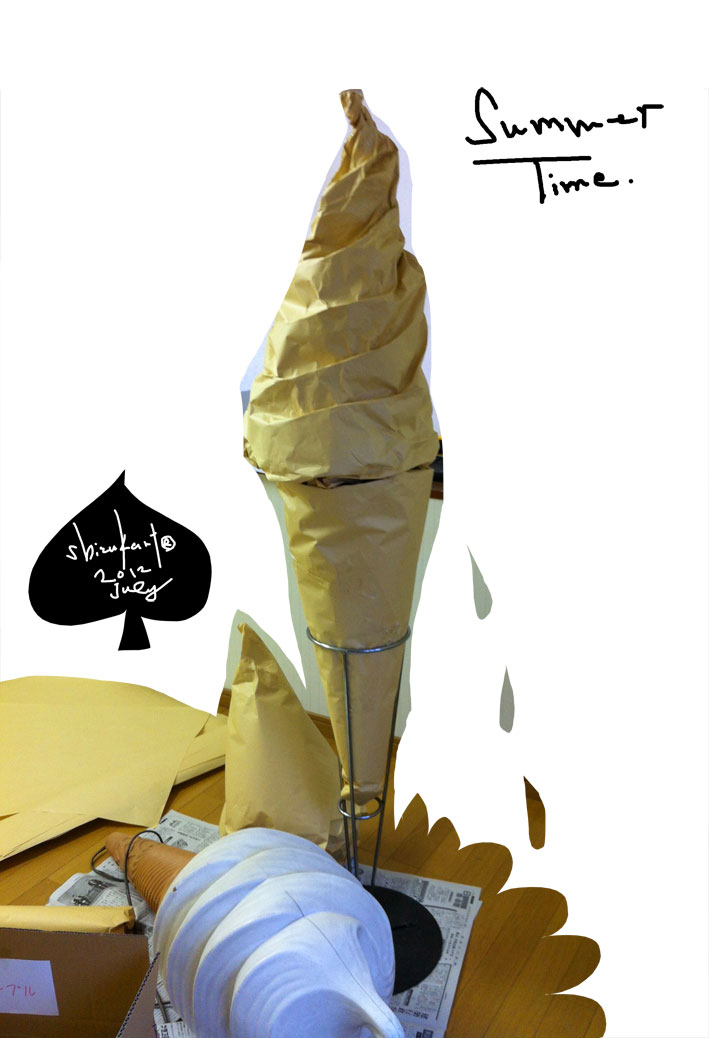 “soft serve ice cream” こういうのを、つくっております。 あとは、ペンキで色つけて。 ペンで、ラインつけてって。 もう、すぐ、かんせい。 はやく、みせたい。 Share: Twitter Facebook Google+
