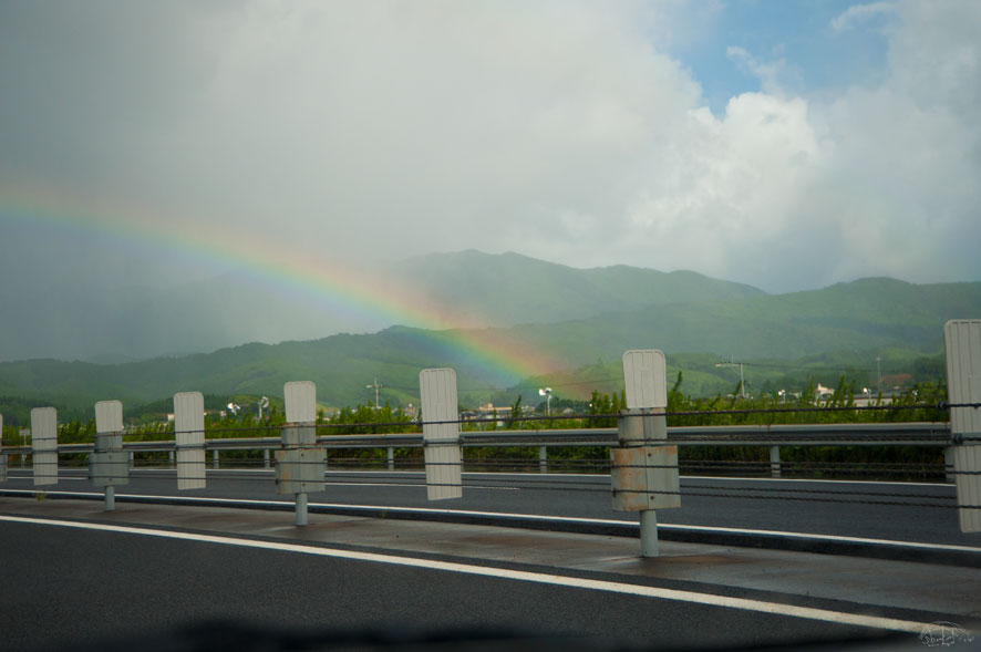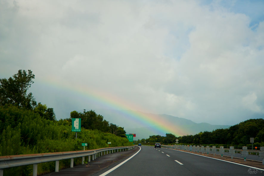 虹のトンネルをクグレ! 今年の八月は、虹がたくさん現れて、 それを見れた “虹タイム” の時間が多くとれた気がします。 虹の右脚の地区に、ともだちが、いたら、電話して 「ちょっと!今、あなたの家が、こっちからみてると、虹の右脚になっちょるよ〜〜〜!」と、 教えてあげたい、興奮まっさいちゅうの、写真でございます。 Share: Twitter Facebook Google+
