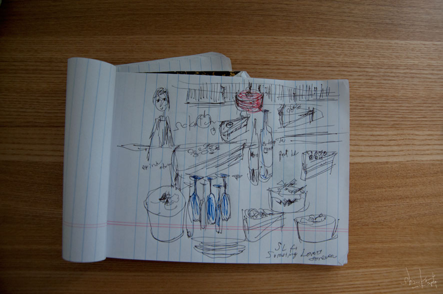 おいしいおひるごはんの、メインのパスタをまっている間に描いた落書き。
