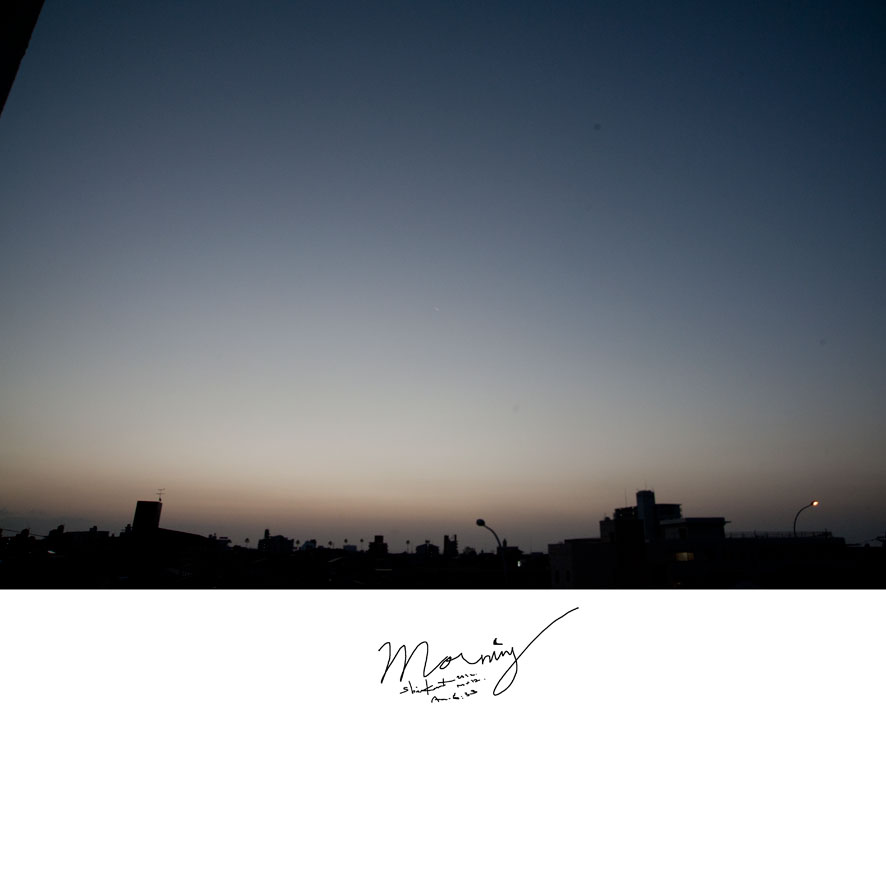 爪形の月が小さく きらりっと白くともっている朝6時33分