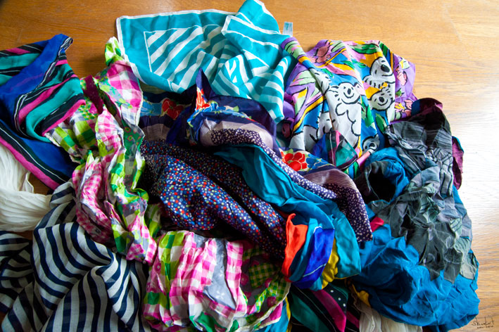 若草通りの街市で、とても大きい段ボールに、スカーフが、ぎゅうぎゅうに詰め込まれていて、