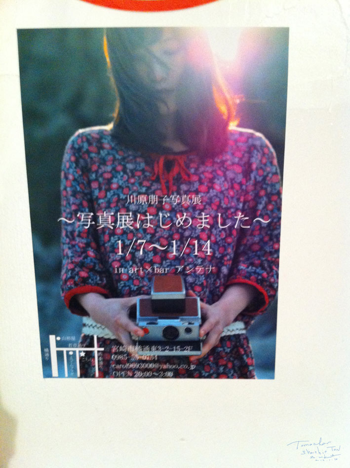 tomoチャン写真展 カメラマンtomoちゃんの写真展。 tomoちゃんの撮影した、 空の写真と、桜の写真が、透明シートにプリントされていて額物に入っている作品。2点。 購入することに、しました。 けど、他の方にもみてもらいたいので、写真展おわってから、ひきとることにしました。 川原朋子写真展 「アンテナ」にて、1月14日まで。 Share: Twitter Facebook Google+
